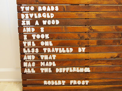 After consulting with a co-worker (who is the human reference book of quotes - Hi Tracy), the Robert Frost poem seemed to be logical. I went home and used these chunky stamp letters.